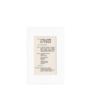 Note di testa: Bergamotto della Calabria, Arancia Amara, Pompelmo Italiano, Limoni di Sicilia, Neroli del Paraguay, Verbena.