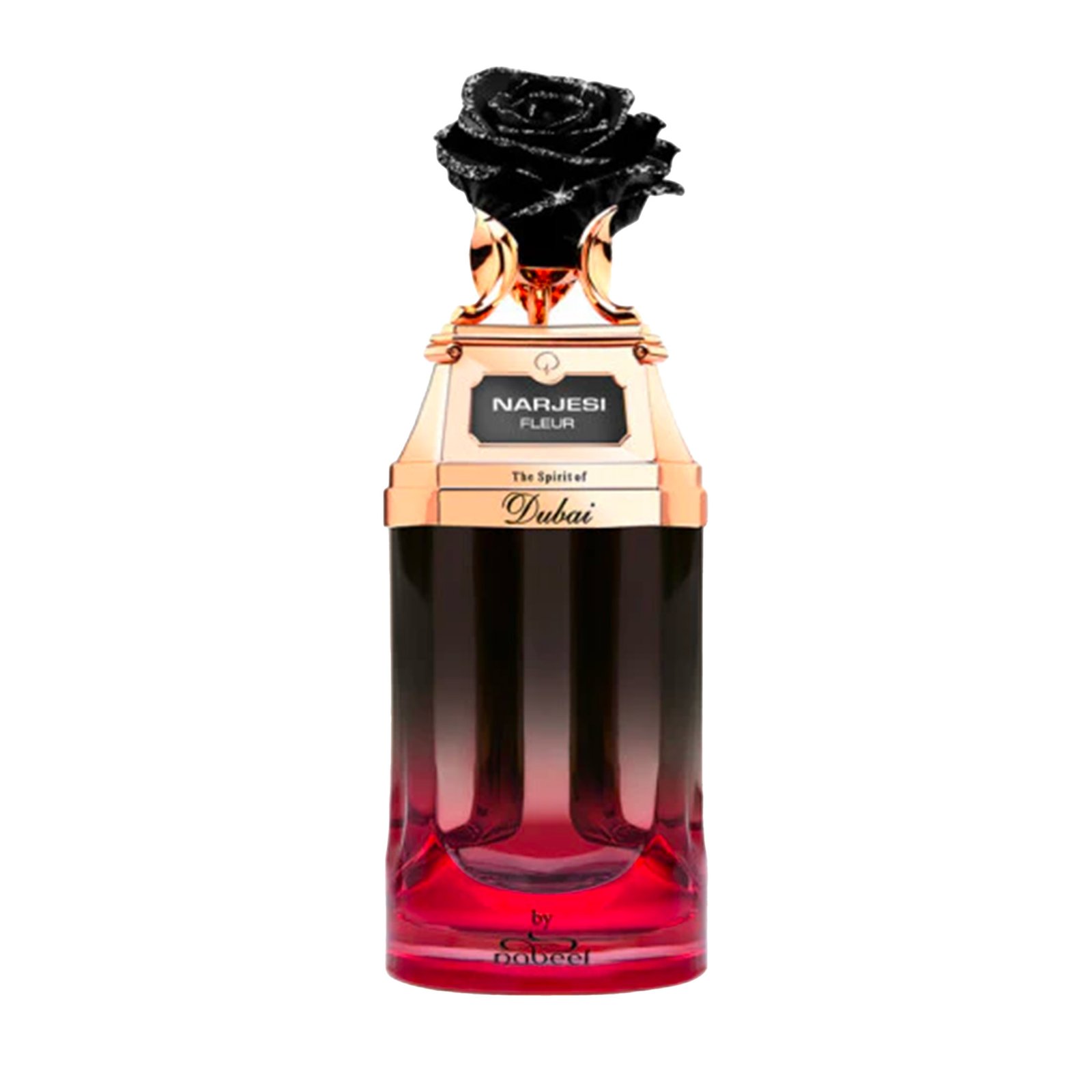 Il flacone di Narjesi Fleur irradia un’aura di eleganza e raffinatezza. Adornato dai doppi colori dell’oro rosa brunito e della più profonda tonalità di nero, il design evoca un senso di glamour senza tempo.